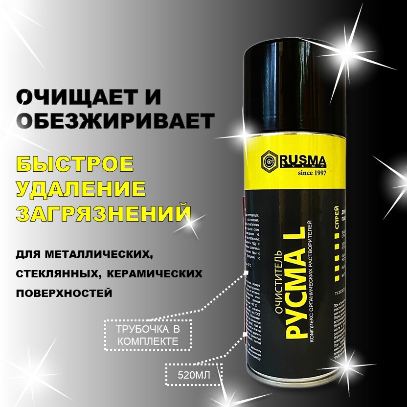 Очиститель «РУСМА L» предназначен для очистки и обезжиривания металлических, стеклянных, керамических поверхностей от различных сложных загрязнений (таких как: остатки смазок, масел, мазута, битума, жировых составов, СОТС, различных смол).