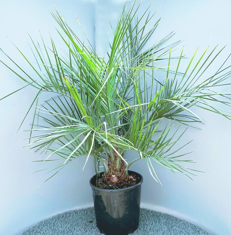 Финиковая пальма - одна из уникальных растений, из плодов которой получают любимый многих продукт: финики. У нее длинные, большие и яркие листья, которые являются визитной карточкой данной пальмы. В естественных условиях высота растения достигает до 25 метров, в то время как домашний цветок не превышает 2-х метров, но за счет размашистой кроны для него потребуется много места. В природе цветет финиковая пальма не раньше чем в 10-летнем возрасте: на ней появляются ярко-желтые бутоны, и только после опыления появляются плоды. Это растение двудомное: поэтому даже если ваше деревце зацветет - фиников от него ждать не стоит, особенно если дерево оказалось у вас мужским, так как плоды приносят только женские особи. Финиковые пальмы - теплолюбивые растения, и температуры ниже +8 ℃ не смогут выдержать в открытом грунте.