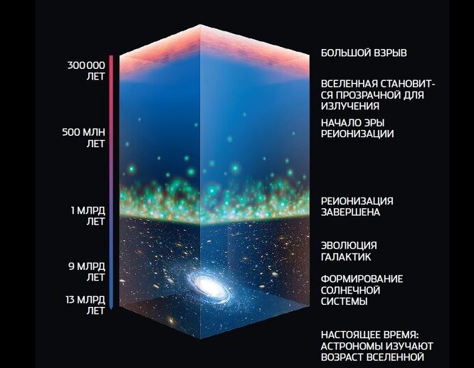 Состав и структура Содержание различных химических элементов, особенно лёгких, таких как водород, дейтерий и гелий, кажется одинаковым во всей наблюдаемой Вселенной. Количество вещества намного больше количества антивещества, возможно, из-за нарушения СРT-инвариантности. Электрического заряда нет вообще, поэтому кажется, что гравитация является преобладающей силой взаимодействия, когда речь идет о космических измерениях. Не существует ни импульса, ни момента импульса Вселенной. Космос имеет гладкий пространственно-временной континуум, состоящий из трёх пространственных и одного временного измерений. Трехмерное пространство плоское (его кривизна очень близка к нулю), а это означает, что евклидову геометрию можно использовать для очень хороших приближений. Пространство-время также имеет простую топологию. Однако не следует исключать возможность существования большего количества измерений и гораздо более сложных топологий и отношений между ними. Форма обычно означает тополог