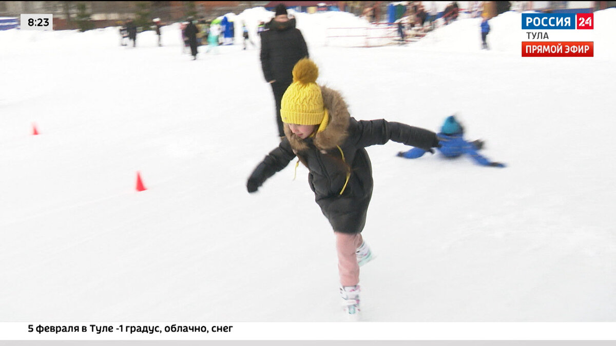 «Быстрее, Артём, быстрее-быстрее! Давай-давай, добегай!» На коньках – совсем юные мальчишки и девчонки, однако страсти на льду – совсем недетские. В соревнованиях принимают участие ребята из 6 образовательных учреждений Зареченского района. И почти для всех конькобежный спорт – в новинку. Максим Баев, ученик 5 класса Лицея №2 города Тулы: «Я с самого детства занимался хоккеем, но потом оставил его и ушёл в футбол. Я принимал участие во многих соревнованиях, но такие, от школы, у меня впервые». Сами юные спортсмены признаются: такие соревнования для них – это ещё и возможность интересно провести время. Маргарита Юдина, ученица 5 класса Лицея №2 города Тулы: «Я думаю, что пробежала хорошо, где-то 7 из 10, наверное. Я же не конькобежка, а фигуристка в первую очередь, но мне понравилось!» Ну а чтобы после забега не пришлось скучать, для ребят подготовили весёлые игры и конкурсы. Например, все желающие могли сыграть в гигантскую «дженгу». Соревнования «Все на старт!» пройдут во всех районах
