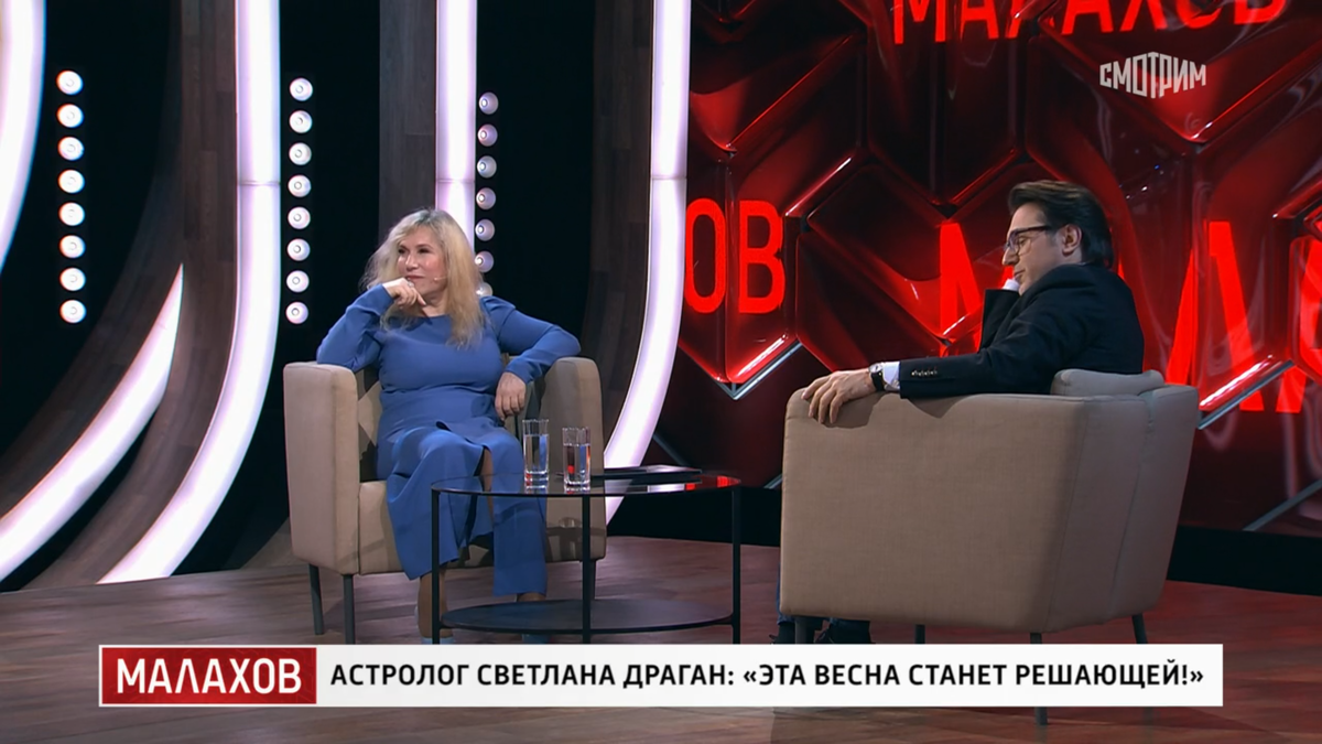 Вчера мы начали рассказывать о новых прогнозах Светланы Драган. Астролог пришла на передачу Малахова, чтобы ответить на вопросы ведущего. Вначале они говорили об астрологии, о самой Светлане и ее даре, а также о ретроградном Меркурии и влиянии затмений.