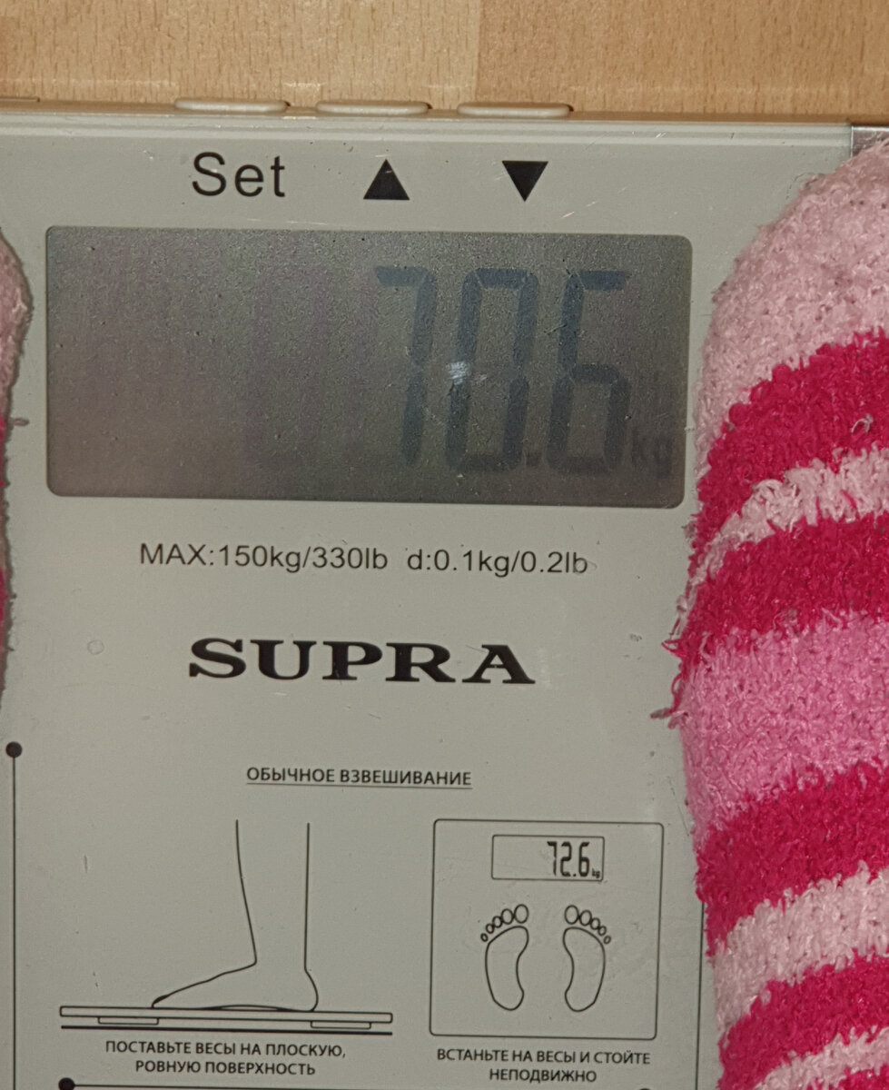Вот у нас и появился первый праздник! Мы уже 10 дней как худеем. Итоги подводили недавно, но тост не произносили. Так вот, поздравляю всех и желаю скорейшего похудения! И мне того же желаю))) Теперь перейдем к нашим весам и видим: Опять 70,6 кг! Спасибо, что не прибавила) Ну ничего, утопчем результат, плотнее будет площадка. Меньше вероятность увеличить вес в ближайшее время. Идет пить кофе, наслаждаемся. И бежим по делам. Сегодня с утра был кофе капучино, выпила его ближе к обеду. Перейдем срезу к обеду. Сегодня у нас итальянский грибной суп и паста "Тоскано". Представили? А вот реальное фото: Что тут скажешь? Вроде и привыкла я так питаться, но вариантов-то ведь у производителя не так и много - рис, греча, макароны и картофель. И сушеные овощи в разных пропорциях: положили томат - получили томатный суп, положили грибы - грибной суп, и т.д. Фантазии разгуляться особенно и негде. Ну и мой любимый легкий десертик, который скрасил обед: После обеда слегка помедитировали, набрались сил,