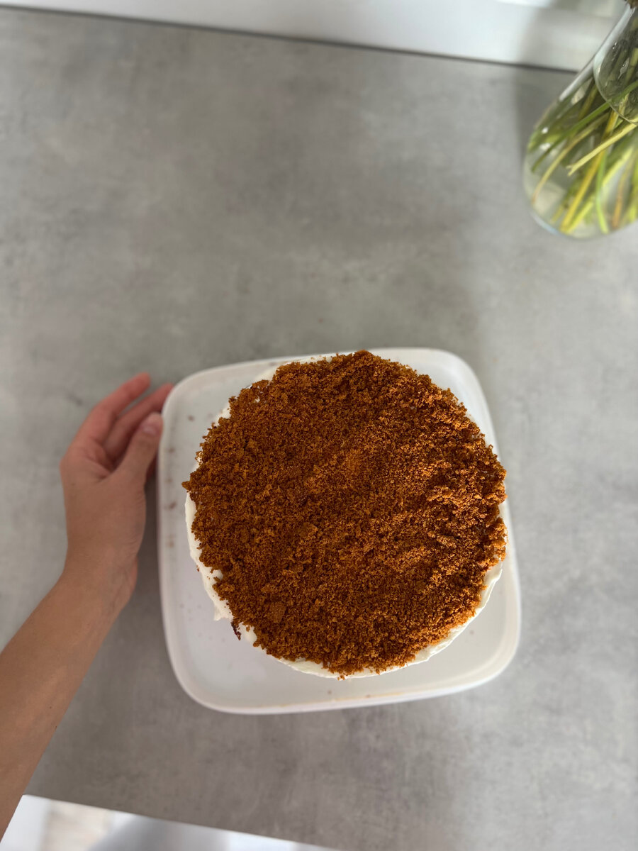 Что понадобится👇🏼 Крем ✅ Сметана 25% 3 банки - 1кг примерно (у меня 980 гр) Сливки вкусвилл 30% - 190 гр. Сахар - 40 гр. Коржи✅ Сахар - 85 гр. Соль - 3 гр. Мед гречишный - 150 гр. Масло сливочное 82,5% - 150 гр. Яйцо с0 - 2 шт. Мука пшеничная - 180 гр. Сода - 10 гр. Лимонка - 5 гр ( примерно, чтобы погасить соду) Прослойка из красной смородины (взяла у мамы с огорода) Красная смородина - 400 гр. Крахмал кукурузный - 15 гр. Погнали готовить 😄👇🏼 В сотейник добавляем Сахар, соль, мед, масло и ставим на огонь, и ждем, пока все ингредиенты соединятся воедино, слегка помешиваю деревянной ложкой. Далее, добавляю гашеную соду, активно мешаю ложкой, держу на огне 1-2 минуты и снимаю с плиты. Даю медовой массе немного остыть 10-15 минут. Далее добавляю 2 яйца, хорошенько размешиваю и всыпаю муку. Перемешиваю до однородного состояния (чтобы не было комков). Тесто должно быть тягучим и сливаться с ложки непрерывной струйкой👌😂 Далее приступаю к выпечки🙌 Все ингредиенты соеди