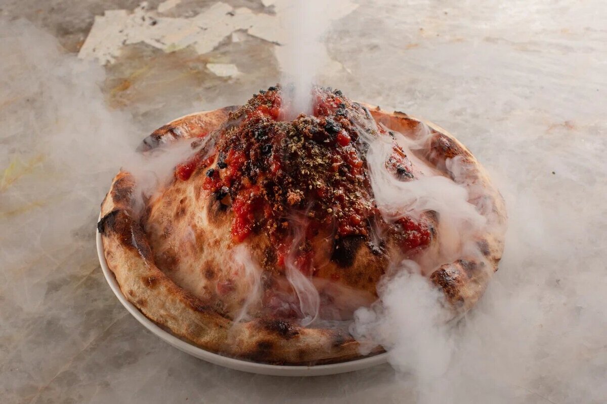 Шеф-повар Мирко Дзаго («Аист», Onest) и шеф-пиццайоло Леонардо Трапполони («Аист», Bro&N) создали авторскую пиццу «Везувий», имитирующую дымчатую завесу лавы. Томатный соус и характерные «леопардовые пятна» делают пиццу похожей на настоящий вулкан, а эффект извержения создается с помощью жидкого азота. Для сочной начинки использовали сыр моцарелла, копченый сыр скаморца, сыровяленый шпек, орегано и оливковое масло. Пиццу в ресторане выпекают в аутентичной пицца-печи, привезенной из Италии. Попробовать «Везувий» можно будет в ресторане «Аист» с 9 по 16 февраля.