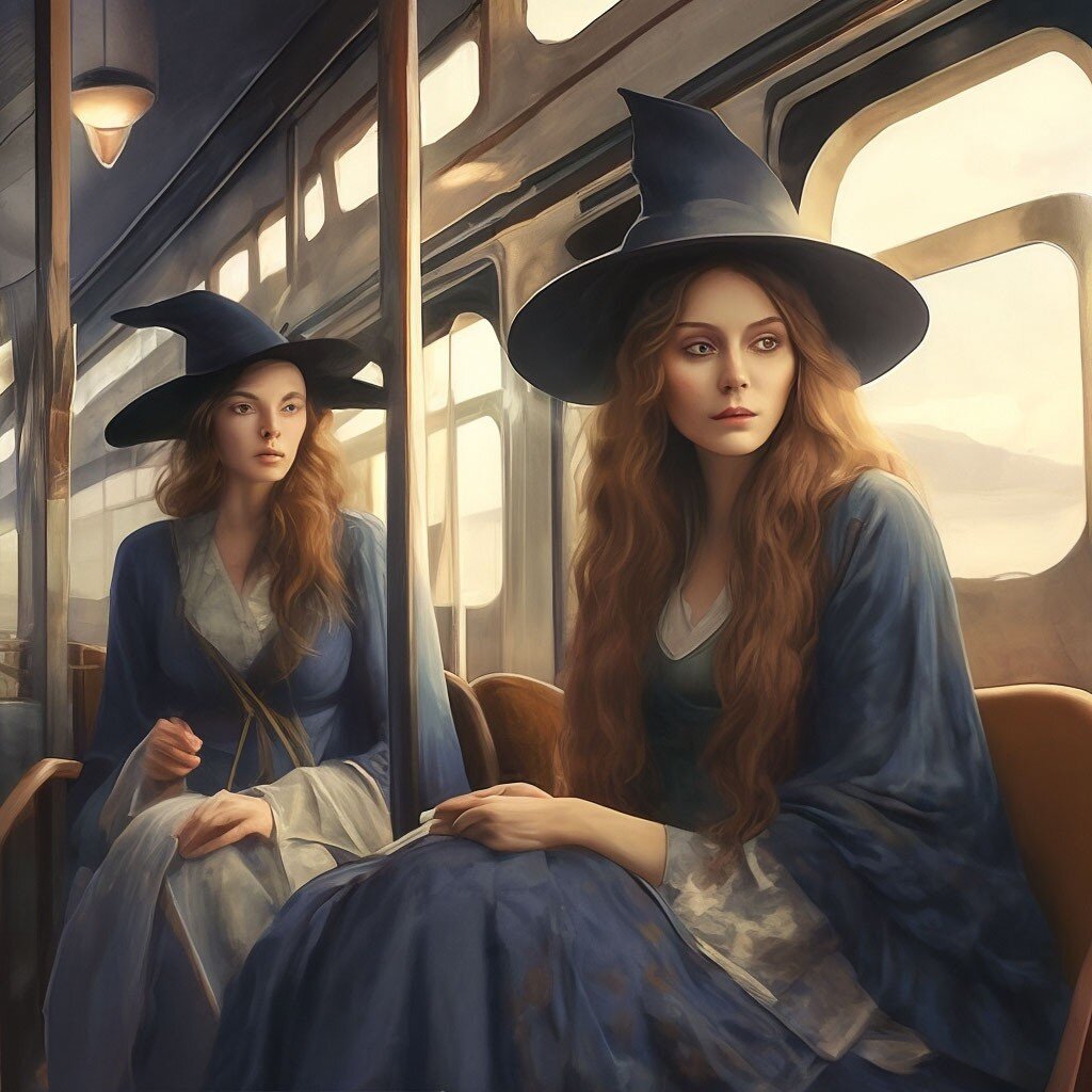 Глубокая ночь окутала станцию, когда мистический поезд медленно тронулся в путь. Молчаливо сидя в своем купе, девушка по имени Лена ощущала странную тревогу, словно воздух наполнился магией и тайнами. Вдруг, дверь купе распахнулась, и в него вошли две женщины, одетые в длинные платья из черного бархата. Их глаза сверкали загадочным светом, и Лена почувствовала, что они не такие, как все. Они приветствовали ее таинственным шепотом, и Лена поняла, что они необычные существа. Женщины представились как ведьмы, стражи древних знаний и магии. Они рассказали Лене о своих предках, которые были выдающимися колдуньями и передали им свои знания и силу. Ведьмы говорили о том, как они следуют древним традициям, проводя ритуалы и обряды для поддержания баланса между миром людей и миром магии. Они рассказали Лене о различных видениях магического мира, о том, как использовать заклинания для помощи или наказания, о том, как поддерживать связь с природой и духами предков. Ведьмы утверждали, что маги