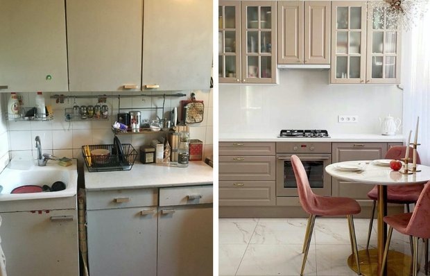 Запоминайте классные решения и вдохновляйтесь Агнетта подарила вторую жизнь двушке с «бабушкиным» ремонтом. Ремонт наша героиня делала сама: продумала светлый и стильный интерьер с золотыми акцентами, а кухня стала сердцем дома. Она получилась красивой и функциональной, но не обошлось и без ошибок. Рассказываем про самые интересные решения. Квартира находится в доме 1961 года постройки: такие сооружения возводили после сталинок, но сталинские технологии сохранили. Отличительная особенность домов этой серии — высокие потолки, качественная тепло- и шумоизоляция. Ремонт был очень старым и запущенным: жирные пятна на потолке, отходящая краска. Агнетта решила сделать перепланировку и организовала уютную кухню за дверной перегородкой — из-за газа это было обязательно, отдали предпочтение двери во французском стиле. На полу положили керамогранит, его же использовали для отделки фартука — материал оказался очень практичным, легко моется. Наша героиня рада, что отказалась от первоначальной идеи
