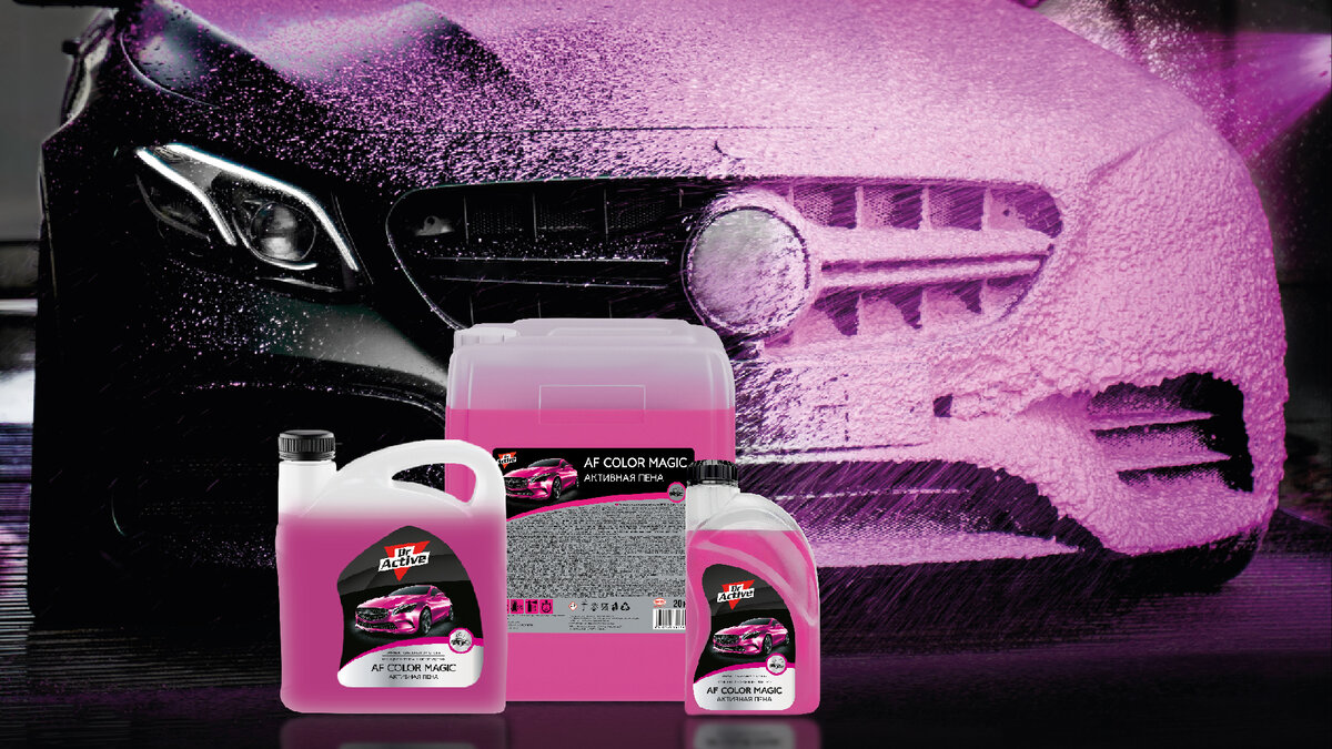 Автовладельцы делятся на два типа – первые на машине просто ездят, а вторые одушевляют ее и с трепетом относятся к каждой детали. Самостоятельно помыть автомобиль для вторых – не работа, но своего рода медитация, разгружающая мозг. А если добавить ярких красок, то самостоятельная мойка может сработать как цветотерапия. Увидеть жизнь в розовом цвете поможет активная пена Dr.Active AF COLOR MAGIC. В чем же особенность нашей пены? Создавая ее формулу, химики делали акцент не только на эффективном удалении загрязнений, но и уделили внимание самому процессу, а именно воздействию на органы чувств человека, который выполняет работу. Особенностью активной пены является изменение ее цвета в процессе мойки машины. При нанесении на кузов она имеет ярко-розовый цвет, а при контакте с водой он меняется на белый. Ни дать ни взять магия цвета – COLOR MAGIC. Название говорит само за себя. Эффект усиливает приятная отдушка: ненавязчивый, мягкий аромат миндальной косточки. Важно: изменение цвета происхо