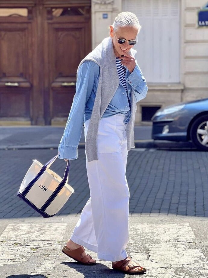 Если вы устали от зимней серо-коричневой гаммы и хотите добавить свежести лицу, то встречайте хит весны и лета 2024 — голубой. Оттенки голубого, как и оттенки белого, обладают анти-эйдж эффектом и отлично маскируют следы усталости. А как мы знаем, цвет одежды играет не последнюю роль в этом вопросе. Сегодня попробуем разобраться во всех нюансах, подобрать удачные сочетания с голубым и выбрать себя самый подходящий оттенок этого модного небесного цвета. Топ-6 сочетаний с голубым, которые сделают вас моложе Пастельные светлые оттенки — это беспроигрышный вариант для тех, кто стремится добавить лёгкости и свежести образам. Не забываем про определение своего цветотипа и основные правила колористики. Если у вас зелёные глаза, светлые волосы и персиковая кожа — выбираем тёплые оттенки, если серые глаза, тёмные волосы и светлая кожа — холодные. Чтобы добиться максимального сглаживания возрастных изменений, нужно правильно выбирать оттенки одежды расположенной у лица и воссоздавать утерянные