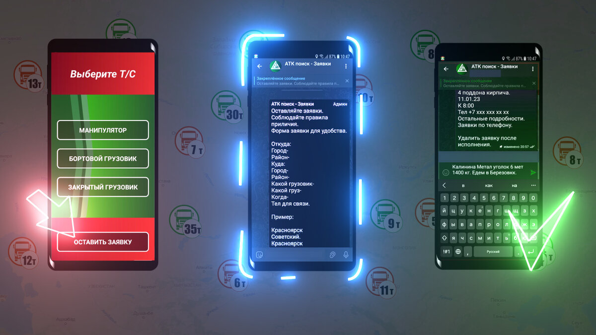 Вариант для интровертов и для тех, кто планирует грузоперевозку заранее. Чтобы заказать грузовик, не обязательно обзванивать водителей и объяснять подробности заказа. Можно оставить письменную заявку и подождать, когда подходящий водитель позвонит вам сам. Заказчику Как оформить письменную заявку на грузоперевозку: Водителю Где искать письменные заявки: Приложение АТК поиск можно скачать в магазинах Google Play и RuStore
