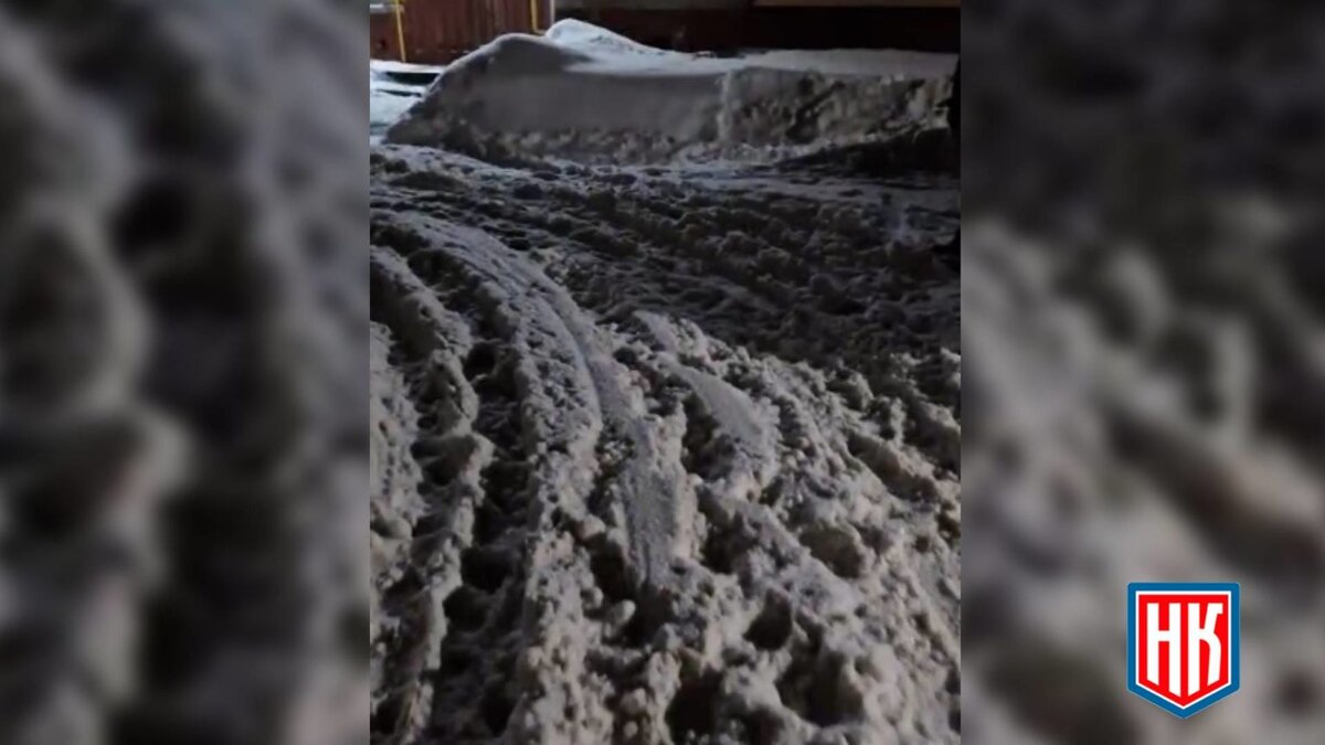 Снежная каша в селе Ямкино Московской области после «уборки» трактором