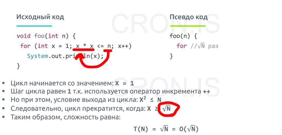 3. Сложность корня O (√n) 4. Сложность степени O (n^x) Сложность многочленов увеличивается с ростом степени А) n– Одиночный цикл от 1 до n даёт O(n) Б) n^2 – сумма арифметической прогрессии Простые программы можно анализировать с помощью подсчёта в них количества вложенных циклов. Одиночный цикл в n итераций даёт f( n ) = n. Цикл внутри цикла — f( n ) = n2. Цикл внутри цикла внутри цикла — f( n ) = n3. И так далее. 5. Экспоненты имеют большую сложность, чем полиномы, если коэффициенты положительные кратные n - O(2^n) 6. Факториалы имеют большую сложность, чем степень. Краткое доказательство состоит в том, что и факториалы, и степень имеют одинаковое количество умножений, но числа, которые умножаются, растут для факториалов, оставаясь неизменными для степени. O(n!)