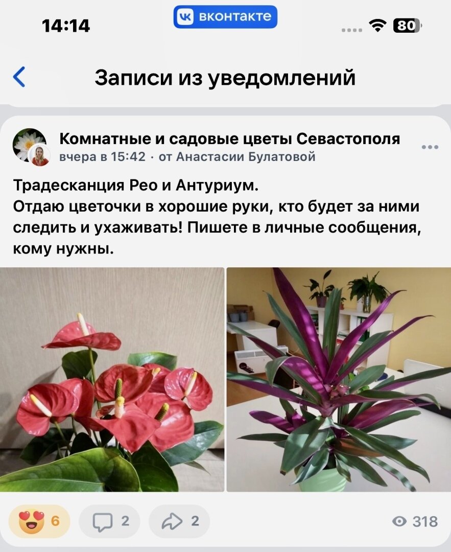 «Мошенники существуют за счет простодушных, я люблю простодушных, тогда пусть будут мошенники — лишь бы жили простодушные…»( Станислав Родионов) Буквально , позавчера , мы, простодушные женщины - цветонутые , чуть не попали ь на удочку новой изощренной формы мошенничества . Может, схема и старая, но я встретилась с ней впервые. Обо всем по порядку. Фото автора Все началось с размещения объявления некой Анастасией Булатовой, 1988 года рождения , в группе в контакте « Комнатные и садовые цветы Севастополя», мол , отдам даром. Кто-то сейчас скажет, что бесплатный сыр только в мышеловке. Или же , халява, сэр , и дамы налетели на бесплатный уксус, который слаще. Возможно, пусть будет так, но года три назад мне девушка сама в этой же группе предложила привезти очень дорогие цветы на спасение . Была в отпуске, а без нее за месяц они чуть не пропали. Сама привезла мне, еще и не хотела брать у меня тот мизерный размер денежного вознаграждения в знак благодарности. Цветочки до сих пор растут у м