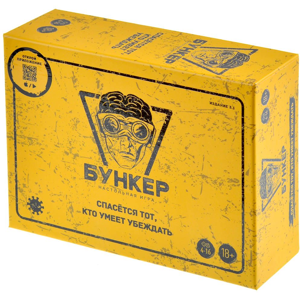 Земля на пороге катастрофы. Однако, вам повезло, потому что вы оказались прямо перед входом в спасательный бункер. Но не одни вы оказались в нужное время, в нужном месте - сотня таких же людей жаждут избежать гибели. Но все ли равны перед ликом новой эры? Или кто-то нужен будущему сильнее прочих? В настольной игре "Бункер" вам нужно будет убедить других игроков, что вас точно нужно взять в убежище, где очень ограниченное количество мест. В начале игры вы получаете карточки характеристик: пол, возраст, профессия, здоровье, хобби и другие. Постепенно раскрывая их в процессе игры, вы знакомитесь с друг другом и пытаетесь понять - кто достоин того, чтобы восстанавливать жизнь после конца эпохи. Вам предстоит провести в бункере 1 год, пережидая самый опасный период катастрофы. В бункере