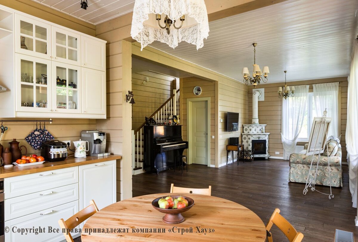 Интерьер дома из клееного бруса в стиле русской усадьбы.