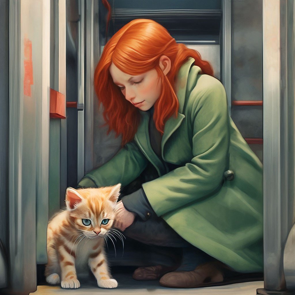 - Маленький, что же ты тут делаешь? Как ты сюда попал, я не видела тебя, когда входила... - девушка наклонилась, чтобы погладить котенка. По его внешнему виду сразу было видно, что он не домашний, от чего девушке стало жалко это маленькое беззащитное существо. Пока девушка гладила котенка, невольно проскользнула мимолетная мысль в ее рыжей, пышной, конопатой и очень мило-курносой голове:
