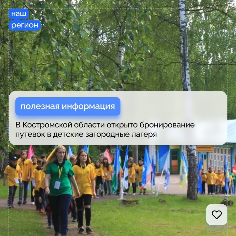 Продажа коммерческих путёвок начнётся с 15 февраля, бюджетных — с 1 марта. 40% скидка на летний отдых детей представляется родителям, работающим в региональных, федеральных органах власти и бюджетных учреждениях региона. Подробности — в наших карточках. #КостромскаяОбласть #Соцподдержка@kostromoblgov