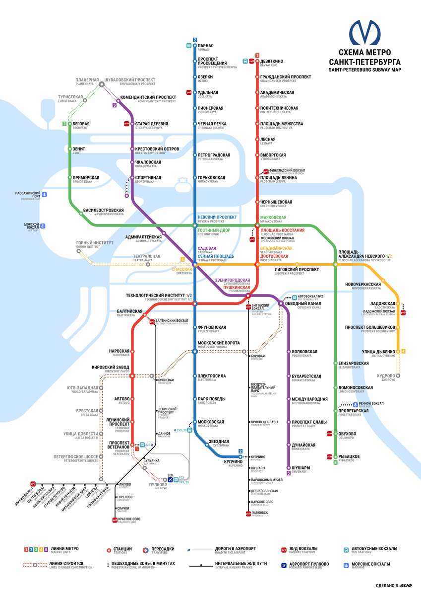 Многие, кто пользуется метро в Питере, заметили, что схема обновилась: на ней прибавились железнодорожные пути, похожие по формату на МЦД, но нарисованы неудачно: у дизайнера Ораниенбаум оказался под Проспектом Ветеранов и в целом видно, что чем больше объектов, тем сложнее их сочетать. Пытаясь нарисовать всё крупно, дизайнер загоняет себя в угол. Я набросал свою схему, она похожа на привычную, но сильно усовершенствованная: симметричная, с пешими зонами между объектами, географически более точная (насколько возможно) и самое главное, со всеми ближайшими перспективами развития, которые рано или поздно дизайнеру как-то нужно будет размещать на бумаге. Скоро выкачу все необходимые форматы для общего свободного пользования, а если Петербургскому Метрополитену схема нравится - дарю. С вас лайк!😊