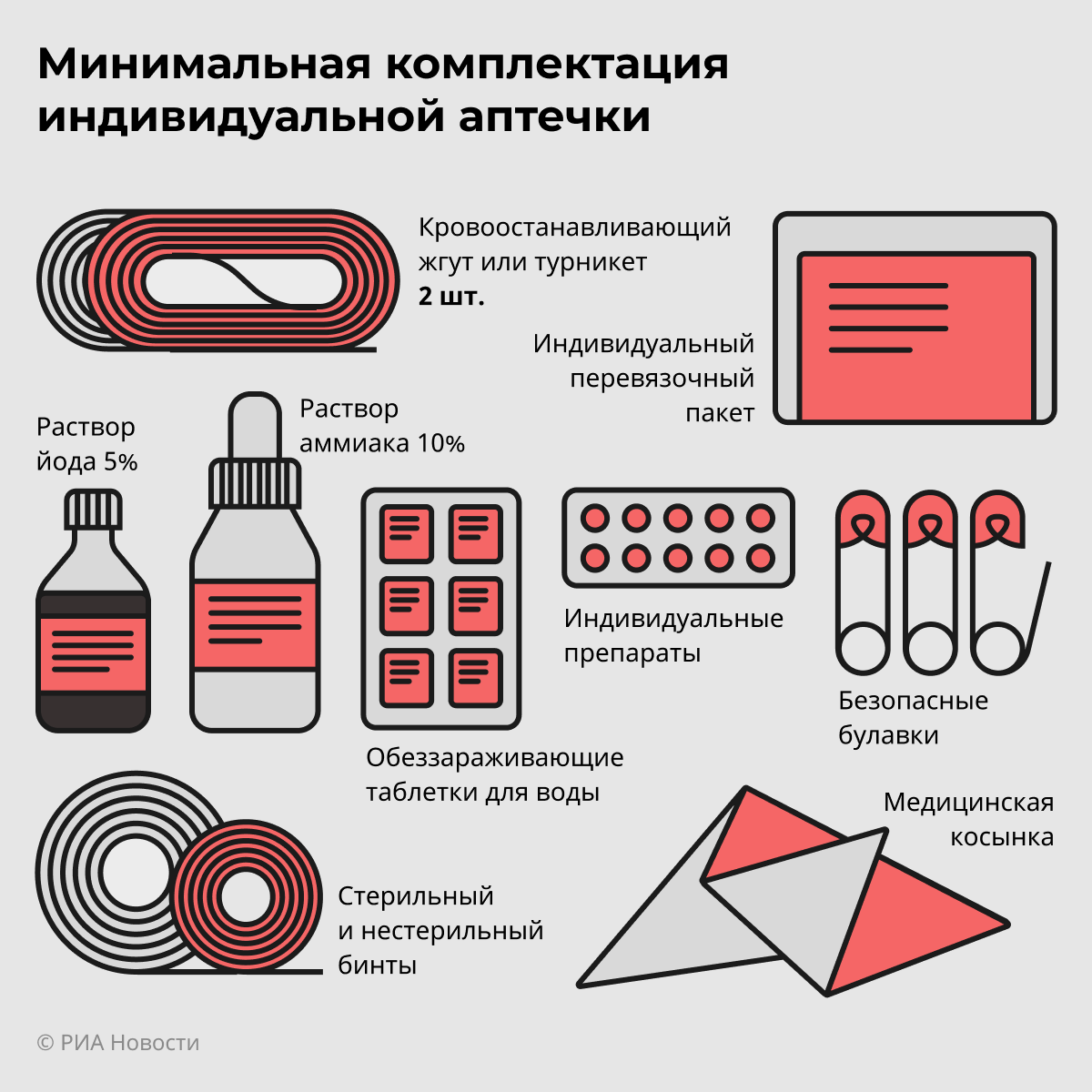 Стандартная аптечка, которую получают призывники, содержит средства для первой помощи при ранениях и травмах.