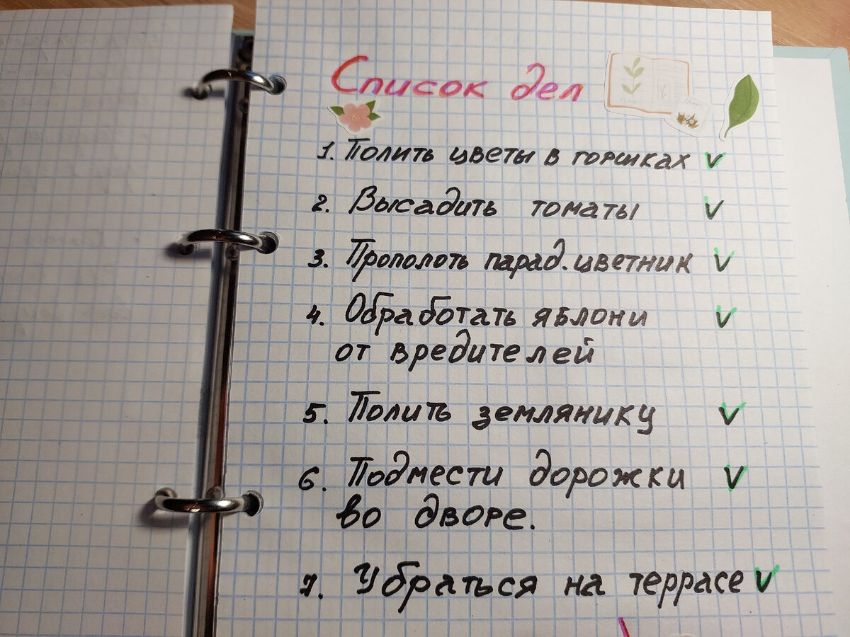 Весной на даче дел невпроворот: нужно навести порядок, посадить, прополоть, поливать, защитить неокрепшую рассаду от холода и прикрывать от жары. Бесконечные дела роятся в голове, не позволяя расслабиться ни на минуту. Как не поддаться панике и быстро привести всё в порядок? В этой статье расскажу, как мне удаётся сохранять спокойствие в режиме многозадачности. Это будут всего 7 простых приемов, которые эффективны не только в саду, но на работе: 1. Переписываю все задачи в блокнот📝 Без паники!!! Прежде чем приступить к садово-огородным подвигам, делаю пару глубоких вдохов и выдохов. Глубокое дыхание успокаивает. Потом беру блокнот и переписываю все задачи, которые нужно выполнить. Зачем? С планами на бумаге гораздо легче работать, чем с планами в голове. 2. Убираю бесполезные дела🌟 Далее анализирую задачи и вычеркиваю бестолковые дела, от выполнения которых можно отказаться. Полезно также соотнести дела по критериям ХОЧУ-МОГУ. Например, если вся рассада, выращенная "про запас