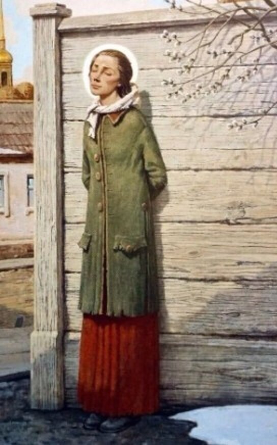 ра́дуйся, мни́мым безу́мием сия́ние благода́ти сокры́вшая.