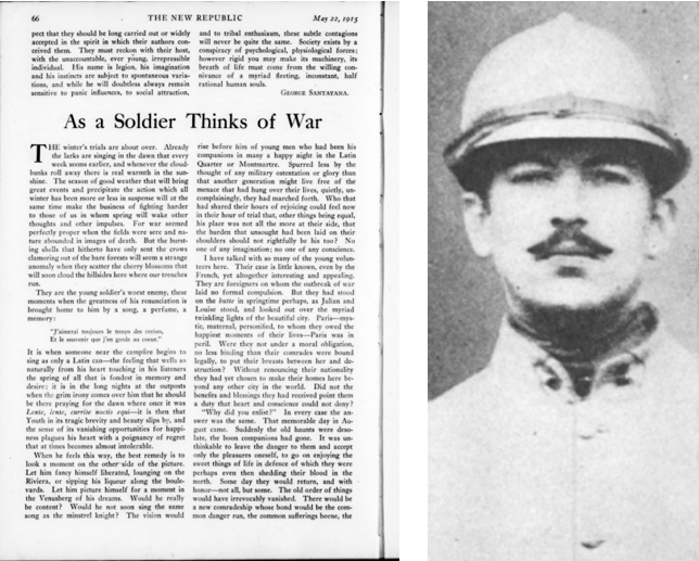 Иногда сюда, в наши блиндажи, находящиеся на линии огня, с похвальной в таких ненормальных условиях регулярностью вместе с почтой поступают пачки американских газет и других периодических изданий. Занятно читать эти далеке от реальности комментарии о войне здесь, где почтальону, приносящему их нам, приходится пригибаться, чтобы укрыться от обстрела. В них собраны ошибки пацифистов, которые на таком контрасте кажутся еще более очевидными: преувеличенное представление о важности человеческой жизни и неспособность понять, что международные отношения строятся на той же самой основе, что и отношения между отдельными людьми.