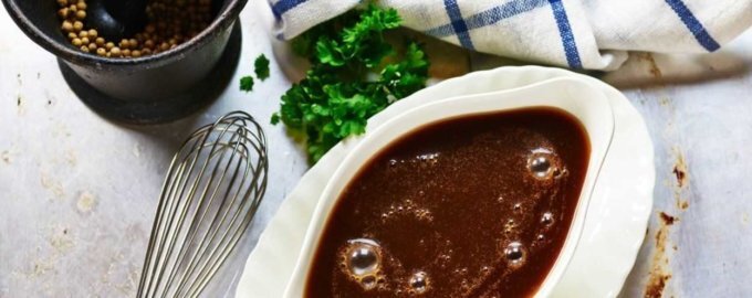 Соус демиглас один из классических мясных соусов французской кухни. Готовят его из запеченных говяжьих костей с овощами, вином и специями