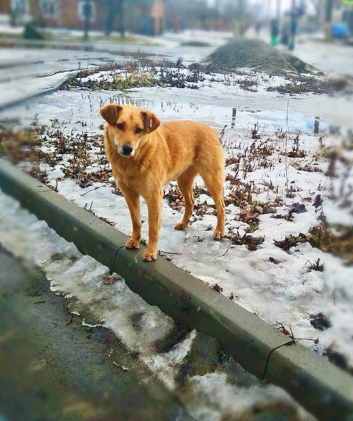 Сегодня я целый день каталась по городу, решая личные дела и совершенно случайно мое внимание привлек рыжий песик, он упорно что-то выковыривал из снега, выглядя при этом как-то грустно и отстраненно.
