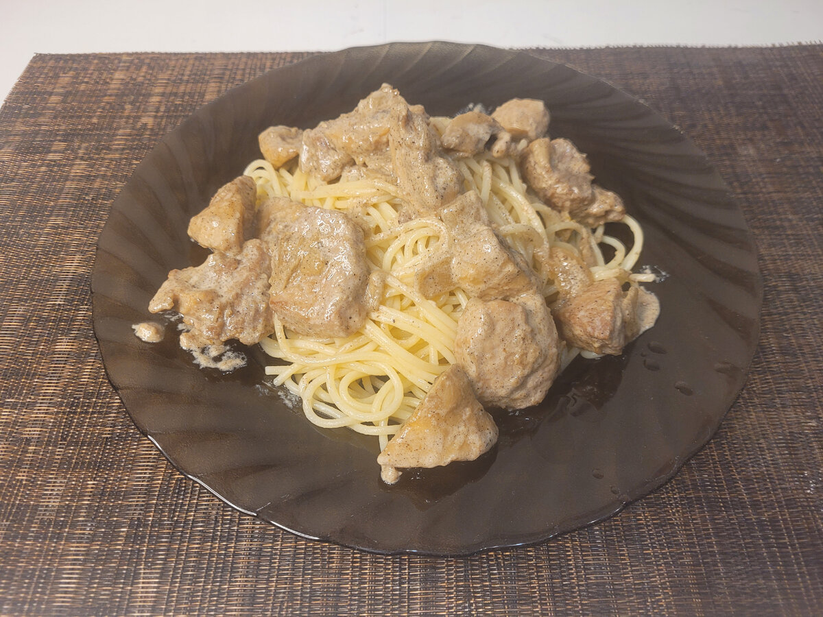 Очень вкусное блюдо из свинины, которое легко и быстро готовится и не требует больших временных затрат. Сочетается с большим количеством гарниров и подойдет как к праздничному столу, так и просто на ужин. Продукты Свинина (мякоть) - 600 г Грибы (шампиньоны) - 400 г Лук репчатый - 1 шт. (среднего размера) Сметана - 300 г Масло растительное - 2 ст.ложки Соль - по вкусу Перец черный молотый - по вкусу Мякоть свинины моем, убираем лишнюю влагу при помощи бумажного полотенца, после чего нарезаем кусочками. Моем грибы и режем на дольки. Если грибы крупного размера, разрезаем на шесть долек, если небольшие, то на четыре. Нарезаем кубиками лук. Разогреваем сковороду на сильном огне, добавляем растительное масло и выкладываем кусочки свинины. Периодически помешивая, обжариваем примерно 7-8 минут, до появления золотистой корочки. Выкладываем в сковороду грибы. Перемешиваем. Примерно через 5 минут после того, как добавили грибы, выкладываем в сковороду лук. Огонь на плите убавляем до сре