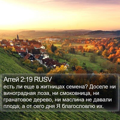"В двадцать четвертый день девятого месяца, во второй год Дария, было слово Господа через Аггея, пророка. Так говорит Господь Саваоф: «Спроси священников о законе и скажи: “Если бы кто нёс освящённое мясо в поле одежды своей и полой своей коснулся хлеба, или чего-либо варёного, или вина, или елея, или какой-нибудь пищи, — сделается ли это священным?”» И отвечали священники и сказали: «Нет». Потом сказал Аггей: «А если прикоснётся ко всему этому кто-либо, осквернившийся от прикосновения к мертвецу: сделается ли это нечистым?» И отвечали священники и сказали: «Будет нечистым». Тогда отвечал Аггей и сказал: «Таков этот народ, таково это племя предо Мною, — говорит Господь, — и таковы все дела рук их! И что они приносят там, всё нечисто. Теперь обратите сердце ваше на время от сего дня и назад, когда ещё не был положен камень на камень в храме Господнем. Приходили, бывало, к копне, могущей приносить двадцать мер, и оказывалось только десять; приходили к подточилию, чтобы начерпать пятьдесят мер из подточилия, а оказывалось только двадцать. Поражал Я вас ржавчиной и блёклостью хлеба и градом — все труды рук ваших; но вы не обращались ко Мне, — говорит Господь. — Обратите же сердце ваше на время от сего дня и назад, от двадцать четвёртого дня девятого месяца, от того дня, когда основан был храм Господень; обратите сердце ваше: есть ли ещё в житницах семена? Доселе ни виноградная лоза, ни смоковница, ни гранатовое дерево, ни маслина не давали плода; а от сего дня Я благословлю их»" (Агг. 2:10–19).