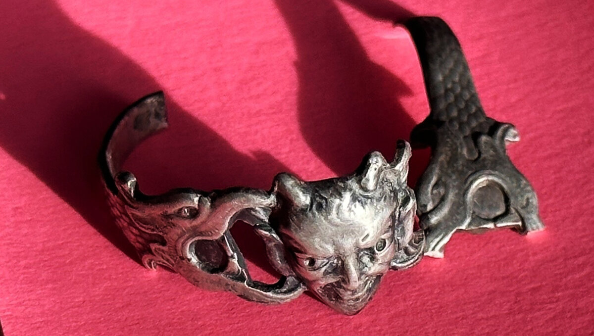 #Таинственный #перстень выглядел следующим образом: На щитке лик демонического существа (Чёрт либо Мефистофель) с эврийским типом лица присутствует улыбка, которая так и норовит заключить вас в свои объятия. Из дьявольской лобной кости возвышаются недоразвитые рога. Уши видимо досталис