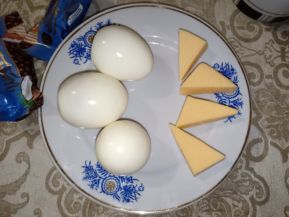 Второй - в основе идут яйца, либо просто вареные, либо омлет. Вот к ним уже надо что-то добавить, а то скучно). Бутерброд или хотя бы просто сыр, как тут. И опять кофе, конфета и завтрак удался.