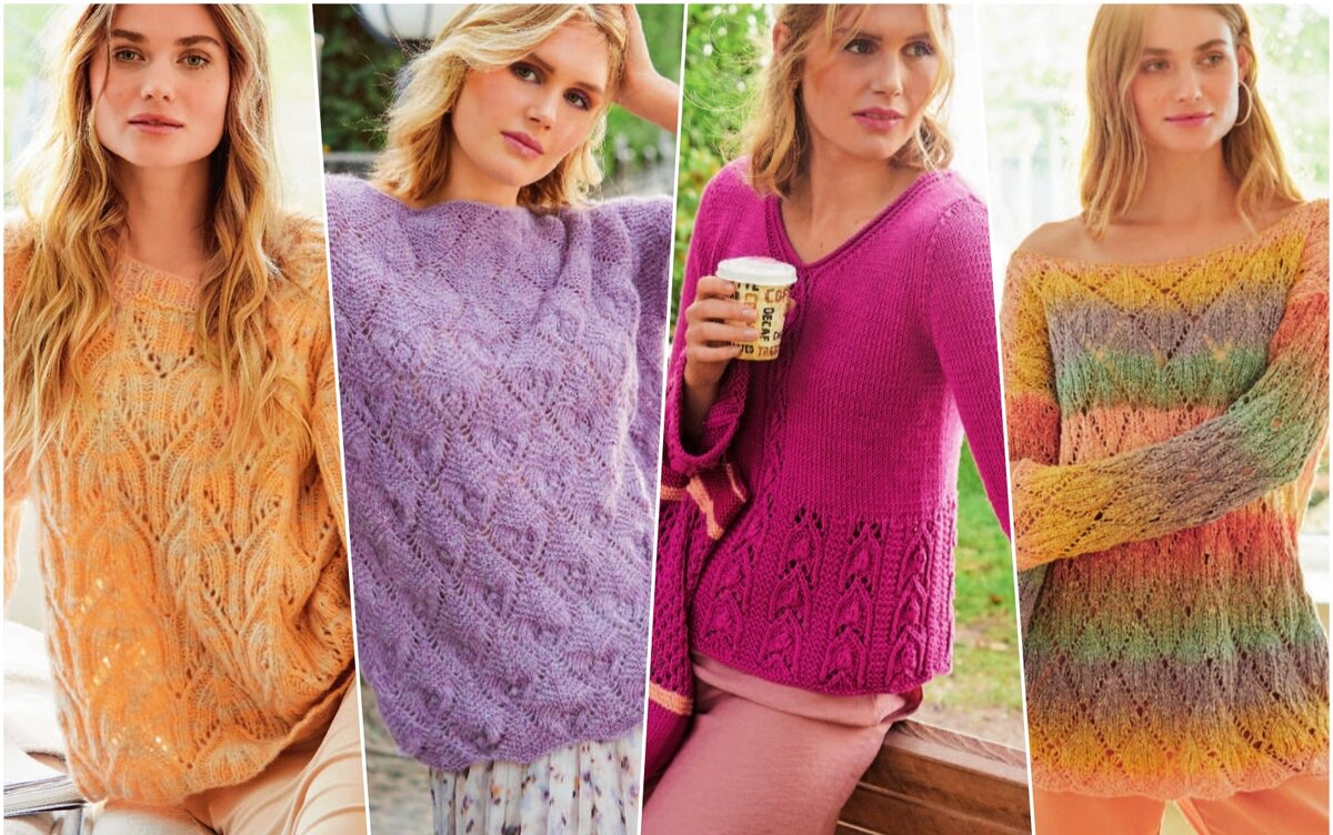 Модель абсолютно разные — пуловеры, ажурные джемперы, платья, кардиганы, вязаная юбка, шарф и даже описание создания вязаной сумки.