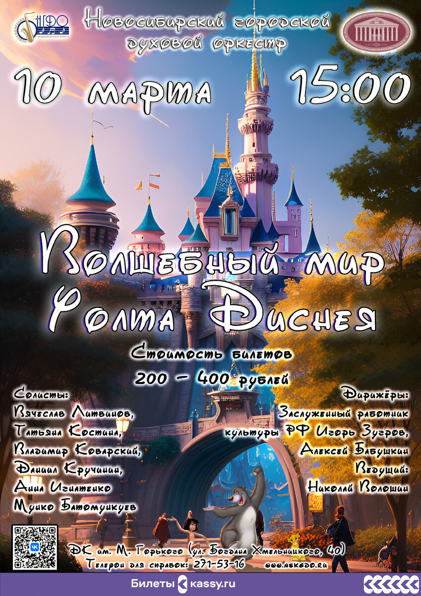 Так называется концертная программа Новосибирского городского духового оркестра, состоящая из лучших музыкальных произведений, прозвучавших в мультфильмах компании Уолта Диснея. Мы подготовили красочный, костюмированный концерт, который не оставит равнодушными ни одно поколение зрителей.