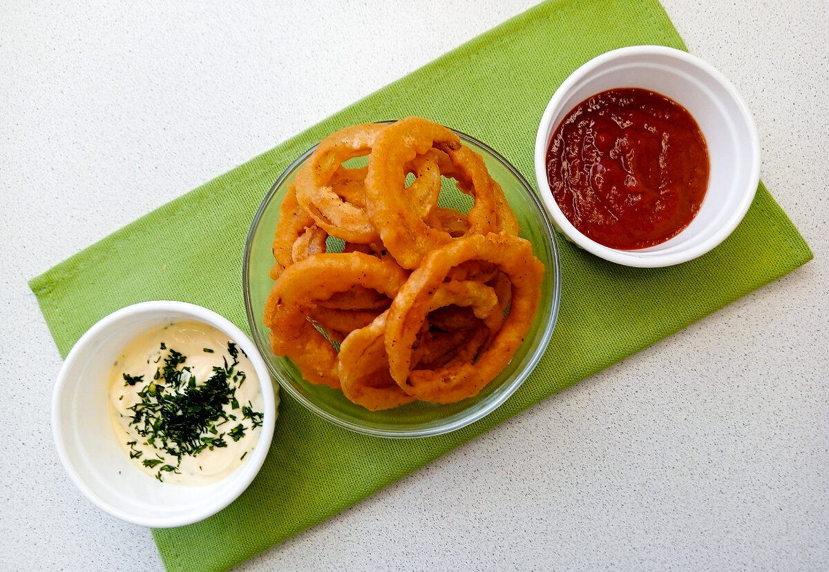 Рада приветствовать всех заглянувших в гости). Здесь я рассказываю о бюджетном питании своей семьи (в данный момент нас двое – я и дочь-школьница). В моем понимании, бюджетный рацион - не равно скудный. За качеством питания слежу. Кормлю себя и ребенка полноценно, вкусно и разнообразно. А к экономии подхожу как творческому квесту. Если Вам здесь понравилось – оставайтесь). Буду рада новым друзьям. Ингредиенты: · Три крупные луковицы (у меня на 400 г) · Мука 120 г · Разрыхлитель 0,5 ч. л. · Вода 180 мл · Соль 1 ч. л. · Молотый черный перец или паприка ¼ ч. л. · Растительное масло для жарки · Мука для панировки Подготовка 1. Лук почистить. Нарезать поперечными кружочками, разобрать на кольца. 2. Залить луковые кольца холодной водой, оставить на 15 мин. 3. Выложить на бумажное полотенце, чтоб вода стекла. Готовим кляр. · Муку высыпать в миску, добавить соль, разрыхлитель и молотый перец (у меня паприка). · Залить теплой водой, тщательно перемешать. Оставить настаиваться на 10 мину