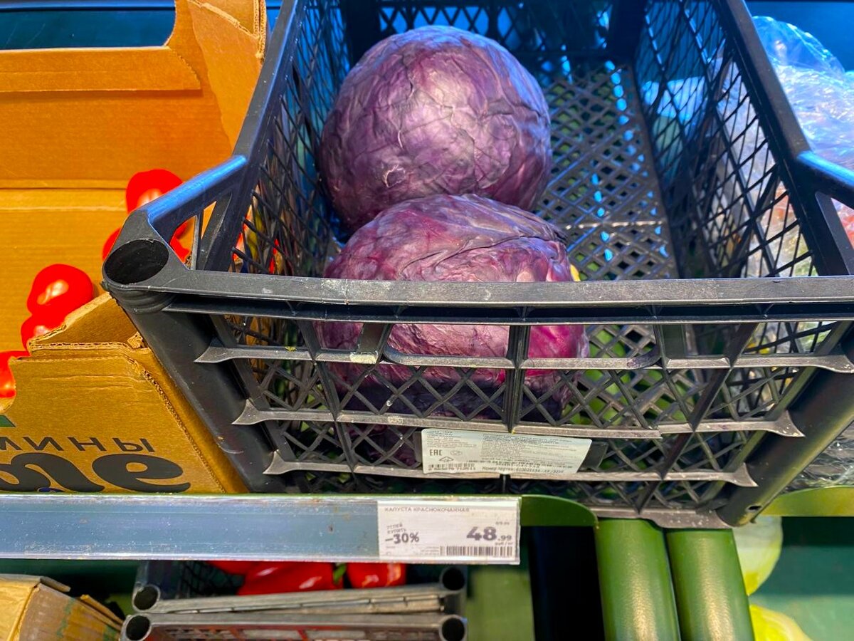 увидела красную капусту, вполне приличную на вид, ценник подошёл, взяла,