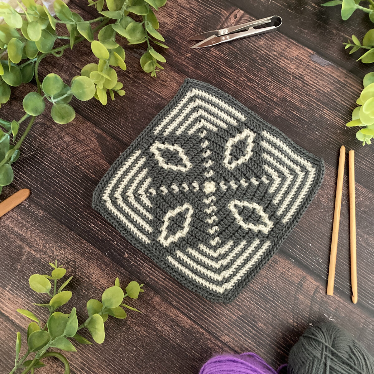 Мотив "Амулет" для мозаичного вязания, образец и шесть схем