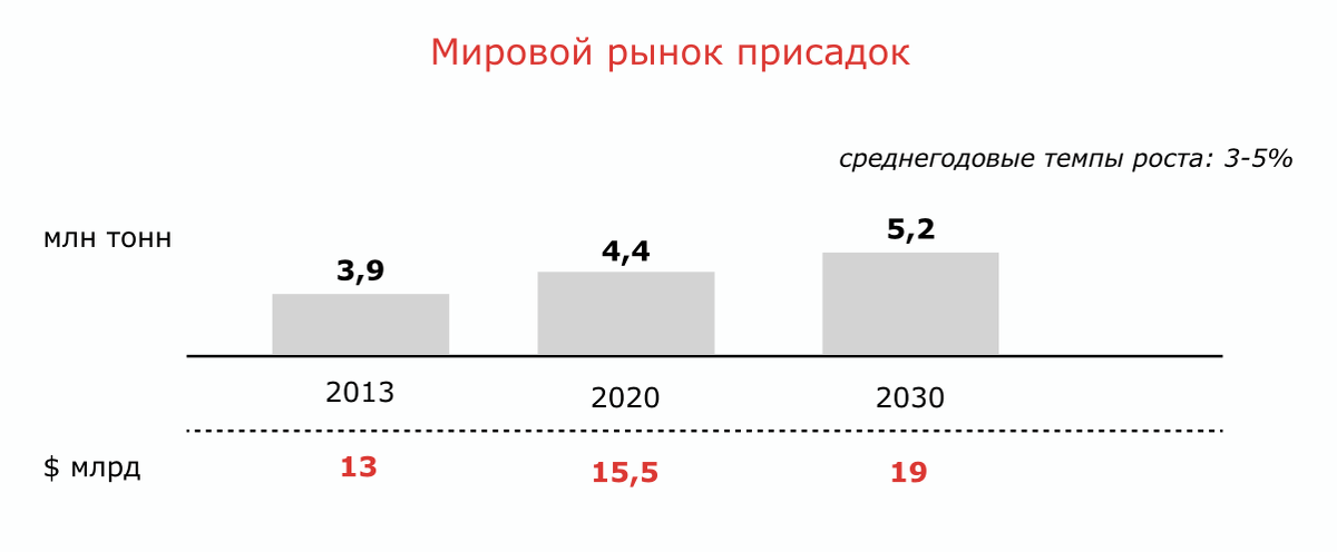 с нефтехимическим сектором, учитывая растущие потребности в промежуточных продуктах нефтехимии. Прогнозы Таким образом, направление мало- и среднетоннажной химии становится одним из основных векторов развития нефтепереработки и дополняет нефтехимические цепочки. Препятствия в создании производств химических веществ НОВЫЕ ВЫЗОВЫ ОТРАСЛИ Рынок присадок Глобальный рынок присадок растет умеренными темпами вслед за ростом спроса на премиальные