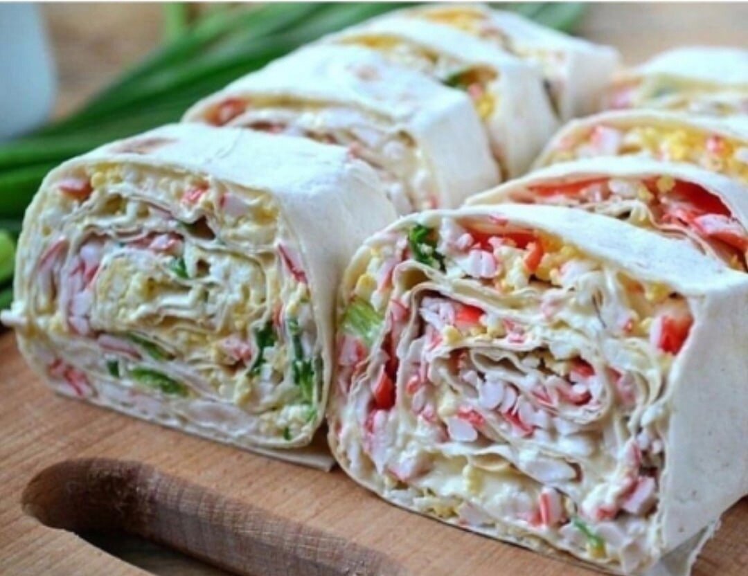 Пошаговый рецепт Рулетики из лаваша (три варианта: с колбасой, шпротами и крабовыми палочками)