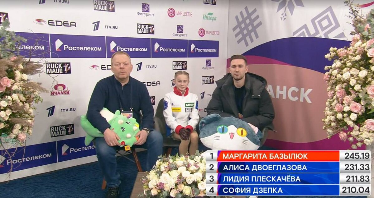 Алена Принева. Тренер Екатерина Моисеева. Гришин решил повторить свои слова, сказанные на первенстве России 2018 года, когда Трусова сорвала риттбергеровый каскад в КП и все равно выиграла первенство. Но Алёна отнюдь не Трусова, когда та занималась у Тутберидзе.