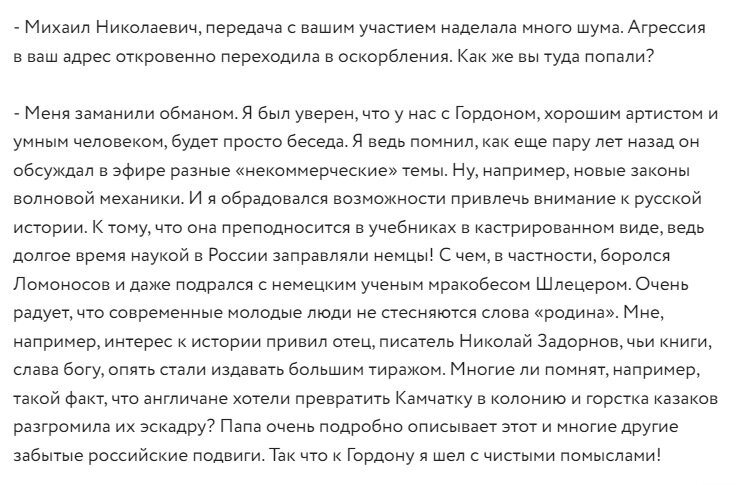 Кологривый довёл Гордона до приступа, отказавшись изменить свою точку зрения в угоду ведущему и покинув его шоу