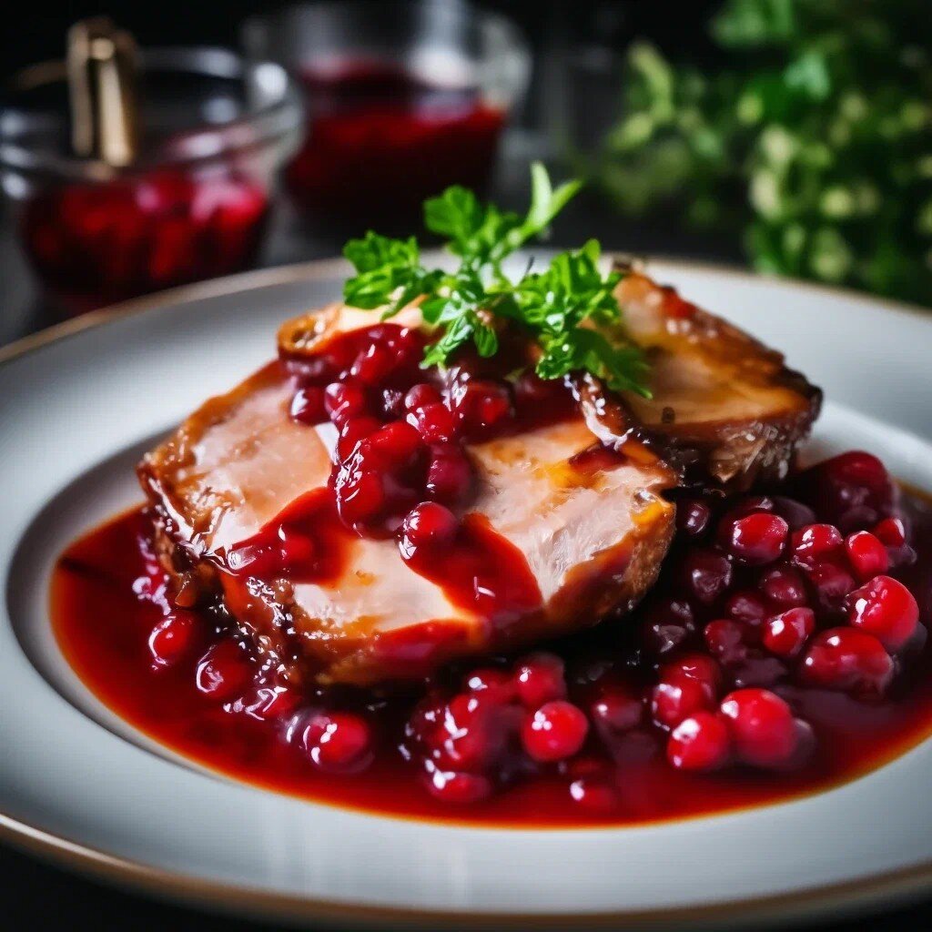 Ингредиенты: - 1 кг свиной шеи - 50 мл растительного масла - 2 зубчика чеснока - 3 ст.л. горчицы - 0,5 ч.л. молотого черного перца - 0,25 ч. л. майорана - соль по вкусу Для соуса: - 400 г красной смородины - 60 мл лимонного сока - 70 г сахара - 80 мл воды Приготовление: 1. Свиную шею промыть и обсушить. 2. Чеснок очистить и измельчить. 3. В миске смешать растительное масло, горчицу, чеснок, черный перец, майоран и соль. 4. Смазать свинину полученной смесью и оставить на 30 минут. 5. Духовку разогреть до 180 градусов. 6. Переложить свинину на противень и запекать в духовке 1,5 часа, периодически поливая мясо выделившимся соком. 7. Для соуса красную смородину измельчить в блендере. 8. В сотейнике смешать смородиновое пюре, лимонный сок, сахар и воду. Довести до кипения и варить на медленном огне 5 минут. 9. Готовую свинину нарезать ломтиками и подавать с красномородиновым соусом. Приятного аппетита!