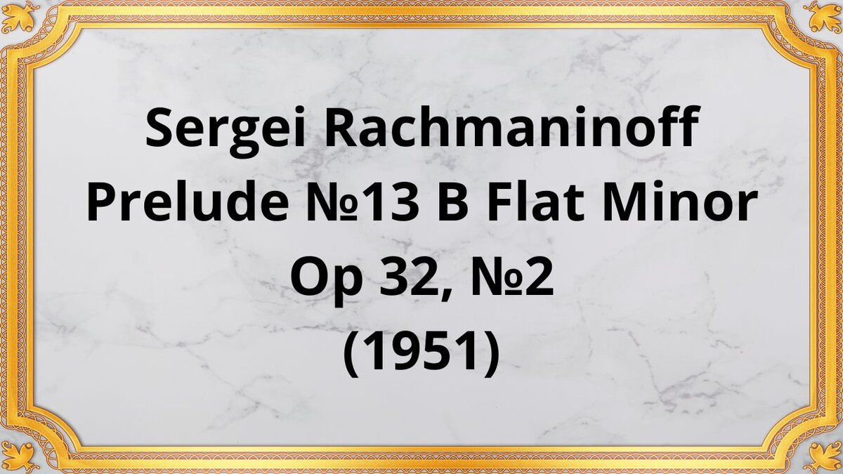 Прелюдия № 13 си-бемоль минор, соч. 32, № 2 — сольное фортепианное произведение, демонстрирующее самобытный стиль и техническое мастерство Рахманинова. Написанный в 1910 году, он является частью его большого сборника прелюдий, характеризующихся разнообразными настроениями и лирическими мелодиями. Произведение часто хвалят за его захватывающую интенсивность и запоминающийся характер, которые закрепили за ним место любимой жемчужины в репертуаре классической музыки.