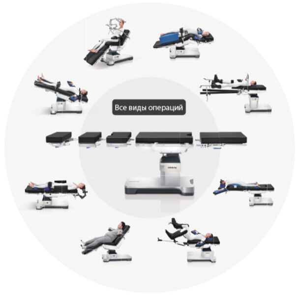 Хирургические процедуры становятся все более сложными, поэтому в современной операционной необходим универсальный операционный стол, который можно мгновенно адаптировать в зависимости от ситуации, повышая уровень предоставления медицинских услуг. Основные отличительные особенности HyBase V8 Classic/ HyBase V8: Гибкость решений в зависимости от выполняемых задач Модульная конструкция Модульный дизайн столешницы обеспечивает возможность адаптации операционного стола для различных типов операций. Эта конструкция является экономически выгодной: при необходимости можно докупить требуемый модуль и аксессуары, а не приобретать дополнительный стол. Высокое качество изображения С развитием малоинвазивной хирургии(MIS) возникает потребность в улучшении качества изображений во время проведения операций под рентгенконтролем. С помощью конструкции HyBase V8/ HyBase V8 Classic можно получать четкие и высококачественные изображения, которые имеют решающее значение для современной малоинвазивной хир