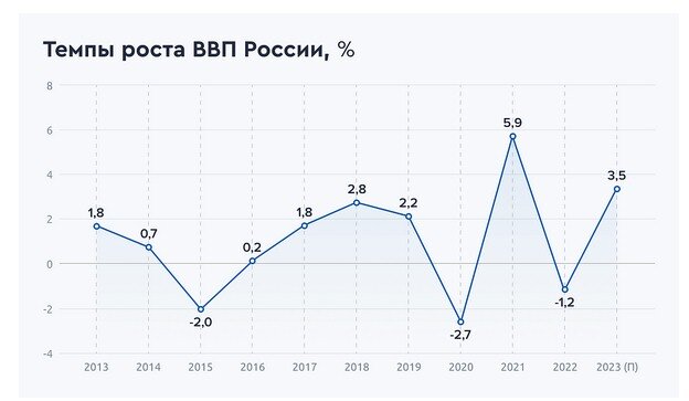 Сегодня все знают, что социально-экономическое развитие государства во многом измеряется общепризнанными экономическими показателями. Любой обыватель скажет, что экономика растет, если растет ВВП государства, национальный доход, сокращается инфляция или падает уровень безработицы. ВВП СССР долгое время был на почетном втором месте, что делало население нашей страны гордым до потери пульса за отечественное производство и страны в целом. Неожиданно Всемирный банк включил Россию в топ-5 экономик мира впереди Германии и всей Европы. Согласно последним данным Росстата падение ВВП в 2022 году составило 1,2%. При этом по предварительным оценкам Минэкономразвития рост ВВП в 2023 году составил 3,5%. Ожидается, что в 2024 году рост ВВП будет слабее в сравнении с 2023 годом, когда экономика активно восстанавливалась. По прогнозу Минэкономразвития в 2024 году рост российской экономики в базовом варианте составит 2,3%, а в консервативном – 1,4%. Вместе с тем экономика сейчас не та, что была 20-30 л