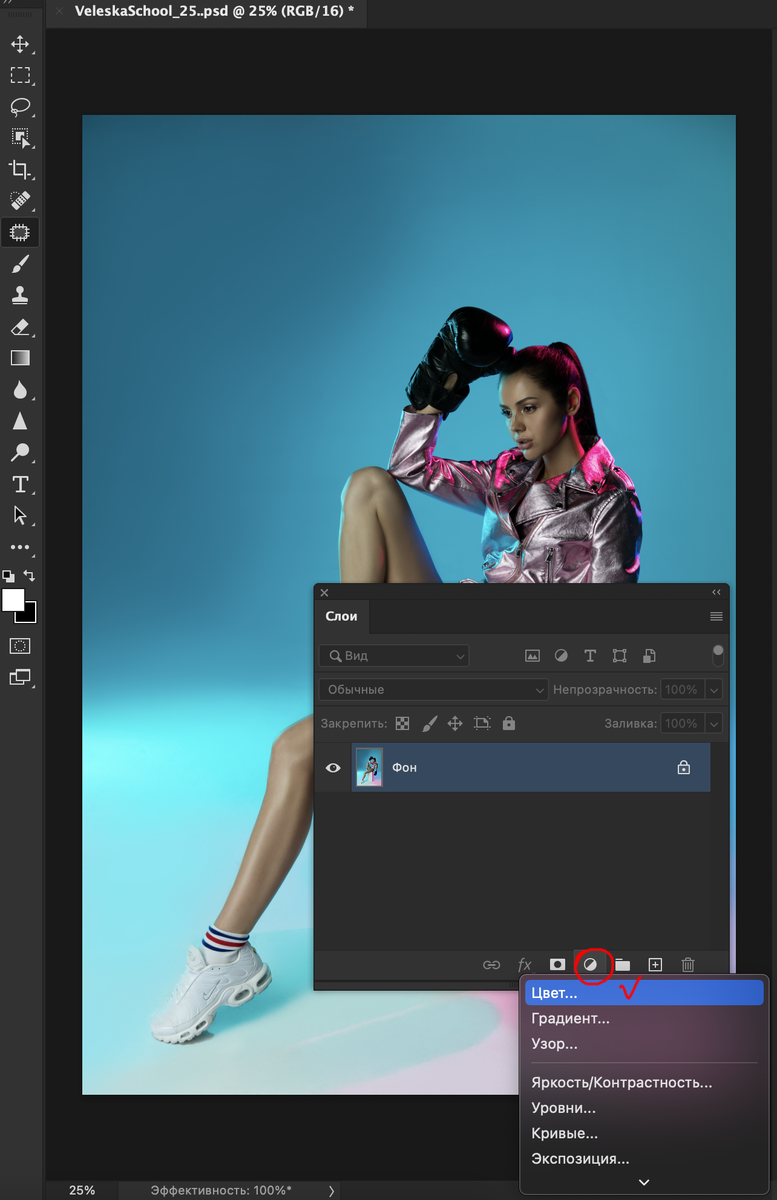 Создаем пошагово: 1) Добавляем корректирующий слой "Цвет" на панели коррекции, которая расположена внизу палитры слоев Оттенок выбираем бежевый, рекомендую потестировать номер 977f6e Переводим этот слой в режим наложения "Мягкий свет" Затем создаем новый корректирующий слой "Цветовой тон/насыщенность" Первый ползунок отвечает за тон, уводим влево - красный подтон, вправо - желтый