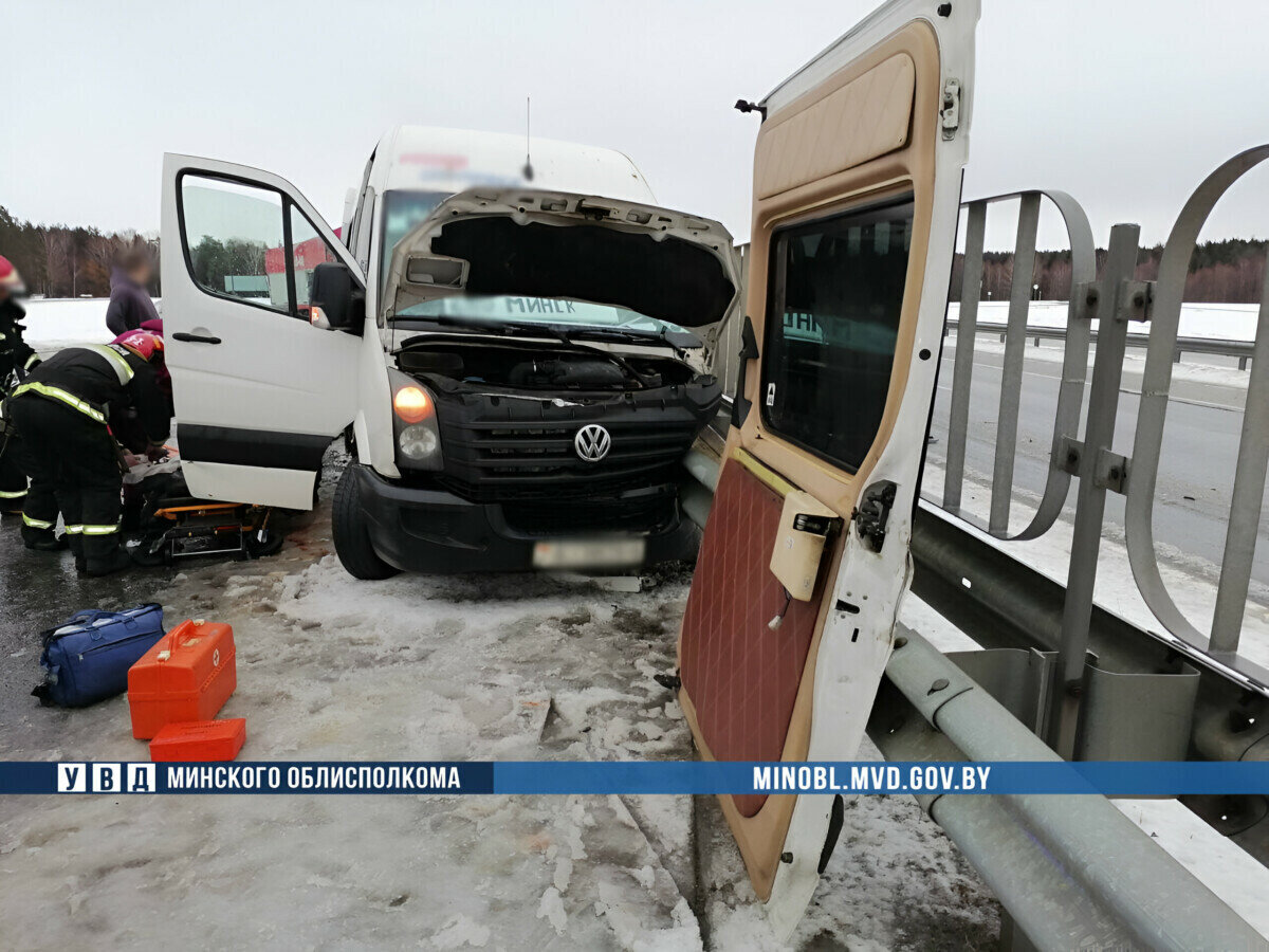 На трассе «Минск-Могилев» маршрутка с пассажирами влетела в ограждение. Семь человек увезли в больницу — Фото