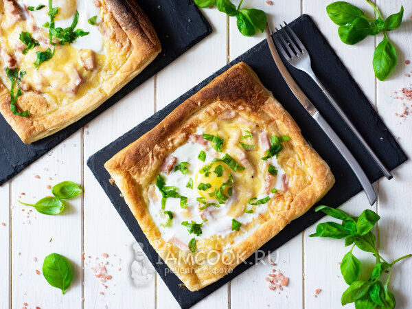 Когда привычные бутерброды чуток наскучили, включается механизм поиска новых идей и решений. Вроде ингредиенты почти те же, что и раньше, но всё же отличаются. Меняются немного процесс приготовления и подача. И сразу блюдо становится интереснее и привлекательнее. Такой завтрак отлично подойдёт для романтического завтрака. Слойки с яйцом, ветчиной и сыром Слоёное тесто нужно предварительно разморозить. 📝ПРИГОТОВЛЕНИЕ: 1. Поделите тесто на два квадрата. Сделайте со всех сторон надрезы ножом (1,5 см от края), а также наколите вилкой. 2. Сверху уложите нарезанную ветчину и тёртый сыр. Выпекайте слойки минут 20 при 180 градусах. 3. Затем вбейте яйцо и запеките ещё немного - до готовности яиц. Украсьте слойки свежей зеленью и подайте на завтрак с чаем или кофе. Больше фото и пояснений можете посмотреть тут: 🧾ИНГРЕДИЕНТЫ: Тесто слоеное - 400 г Сыр твердый - 50 г Ветчина - 80 г Яйцо - 2 шт. Соль - щепотка Базилик свежий - по вкусу Мука - 20 г Приятного аппетита!