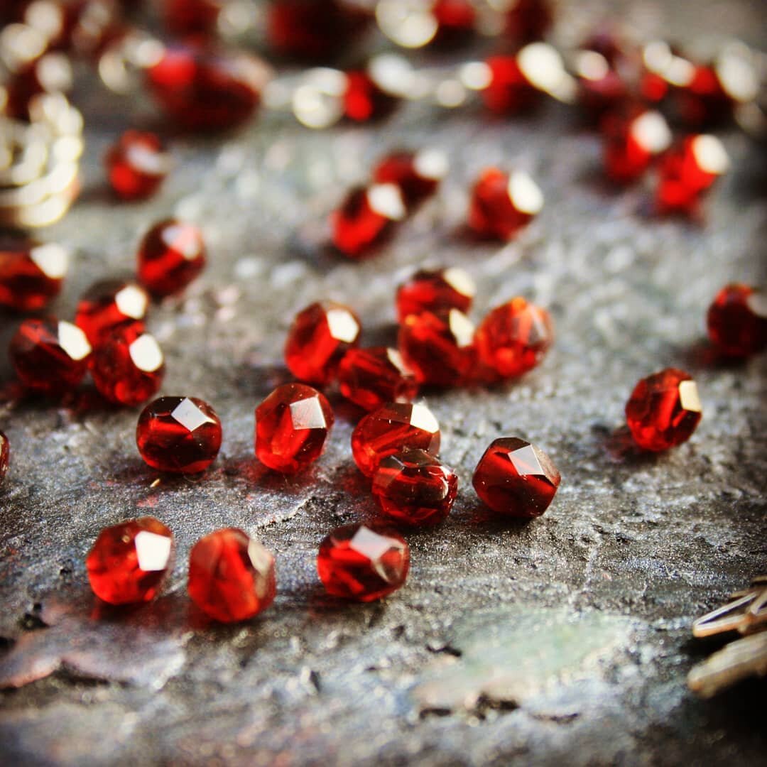 Пироп. Минерал насыщенно-алого или багрового оттенка (благодаря наличию в составе алюминия и магния). Название переводится как «огнеподобный». Одна из наиболее распространенных в природе разновидностей.