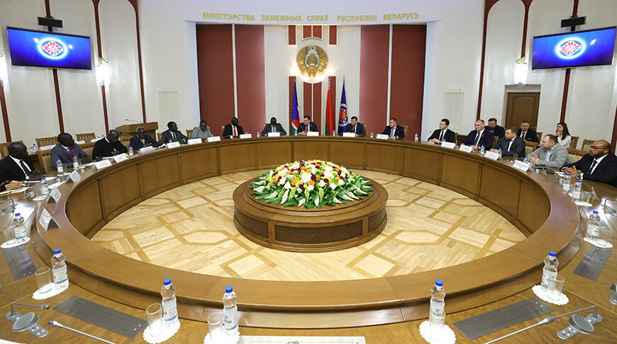 7 февраля, Минск /Корр. БЕЛТА/. Беларусь в 2024 году сохранит тренд на активное развитие отношений со странами Африки. Об этом заявил заместитель министра иностранных дел Беларуси Юрий Амбразевич на встрече с делегацией Южного Судана, передает корреспондент БЕЛТА. Замглавы МИД обратил внимание на представительный состав делегации, в которую вошли руководители ряда министерств. Они прибыли в Беларусь с целью изучения возможностей двустороннего сотрудничества. Программа визита весьма насыщена как встречами политического характера, так и предметными переговорами экономической тематики на предприятиях Беларуси."Надеюсь, уедете не с пустыми руками, а с конкретными планами по работе с нашей страной", - сказал Юрий Амбразевич, добавив с юмором, что насыщенная повестка не позволит иностранным гостям из Южного Судана замерзнуть в прохладном белорусском климате. Замминистра подчеркнул, что прошедший 2023 год стал для Беларуси поворотной точкой в интенсификации отношений со странами Африки. "Минс