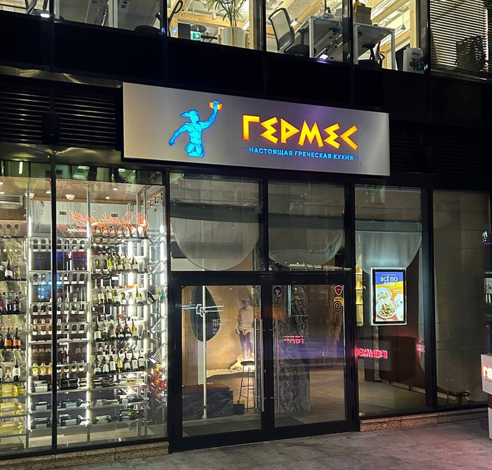 Последнее время в Москве всё большую популярность набирают заведения общественного питания с единой ценой практически на все блюда меню. Это действительно удобно для посетителей, но, главное, чтобы качество еды при этом не страдало. Узнав, что в июле 2023 года открылся новый ресторан греческой кухни ГЕРМЕС с такой ценовой политикой, иду смотреть и пробовать, что там предлагают. Итак, я прихожу по адресу: Лесная, д.7. Большая стеклянная дверь не поддаётся, но девушка , встречающая гостей, не сразу спешит мне на помощь. Следующая сотрудница (в гардеробной) тоже не проявляет ко мне интереса и не одаривает приветственной улыбкой. Однако это не портит моего настроения, я предвкушаю приятный ужин. Меня провожают к заранее забронированному столику. Людей в ресторане практически нет. Оно и понятно: я пришла сюда около 17 часов в будни, рабочий день в офисах еще не закончен. Дизайн заведения выполнен в оранжево-сине-белом стиле, который повышает настроение, ассоциируясь с тёплым солнцем остро